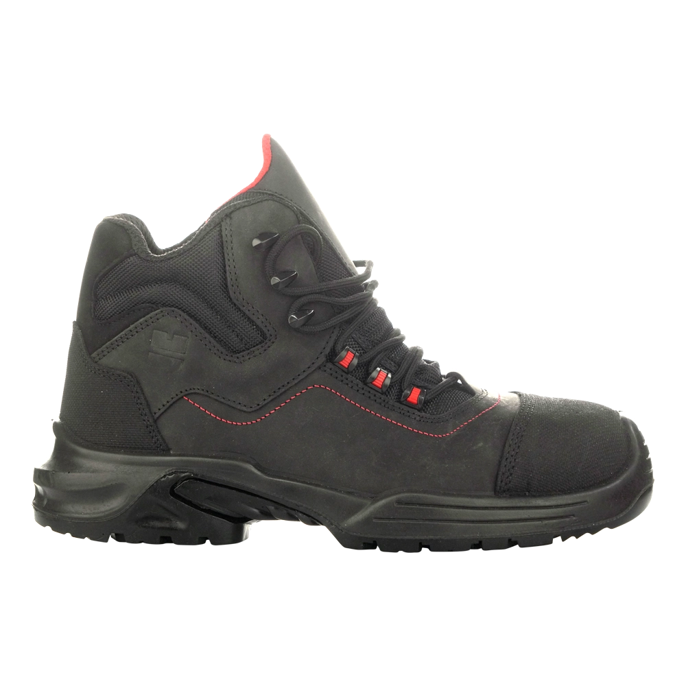 Elgon zaštitne cipele S3 nivoa zaštite su napravljene od nauljene nabuk kože Hidro i najlona, sa zaštitnom kompozitnom kapom, i nemetalnim međuđonom protiv probijanja eksera.