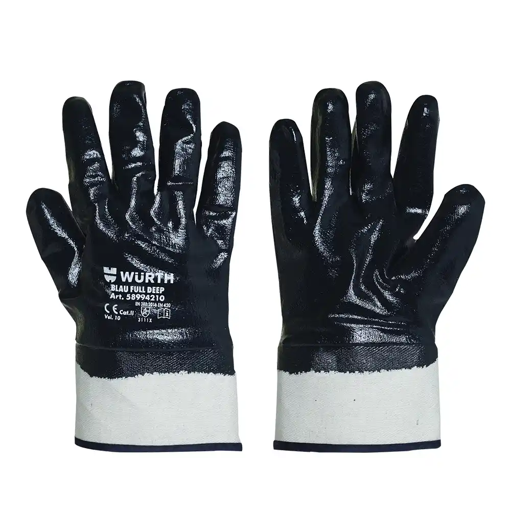 Zaštitne rukavice izrađene od žerseja cele močene u nitril plave boje. Sigurnosna manžetna za zaštitu zglobova ruke i lako navlačenje/skidanje rukavice. Veličina 10.