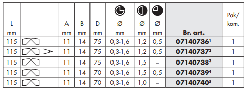 Klešta za sečenje u elektronici prema standardu DIN ISO 9654. Namenjene za meku i delimično za tvrdu žicu.