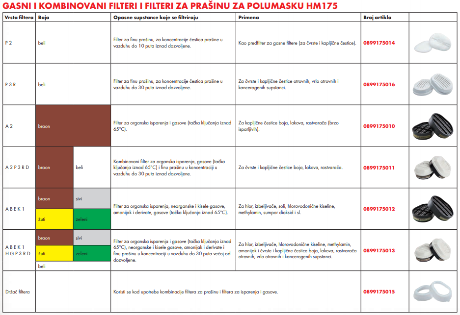 Primena : Za čvrste i kapljične čestice boje, lakova i rastvarača.