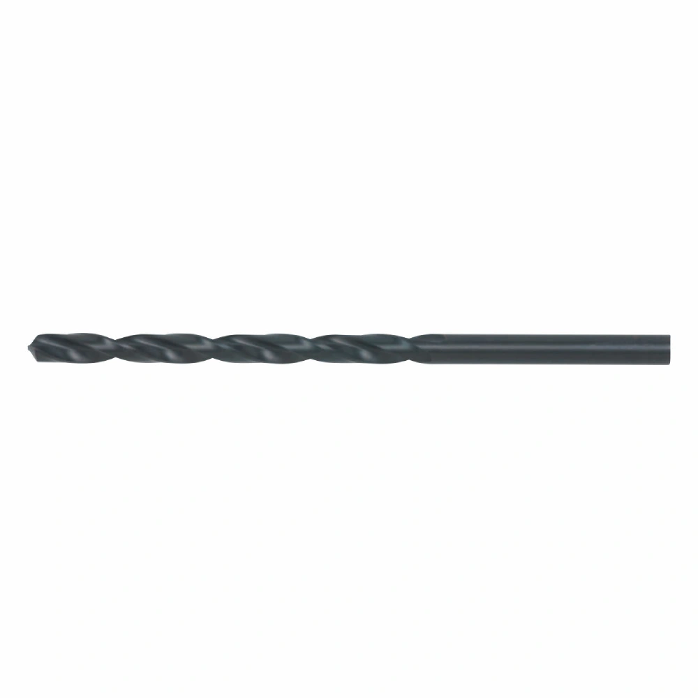 HSS spiralna burgija produžene geometrije prema standardizaciji DIN 340 (maksimalna dubina bušenja ΦD x10). Proces izrade – brušenjem. Namena, za čelike do 800 N/mm2(~23 HRC). Ugao vrha od 118˚(oblika A) potrebno obeležavanje tačkašem na cilindričnim površinama. N tip (30˚)ugao zavojnice - optimalno odvođenje strugotine i smanjenje trenja. Kaljena u pari - površinska obrada, zaštitni sloj od 5 µm fero oksida, boja crna.