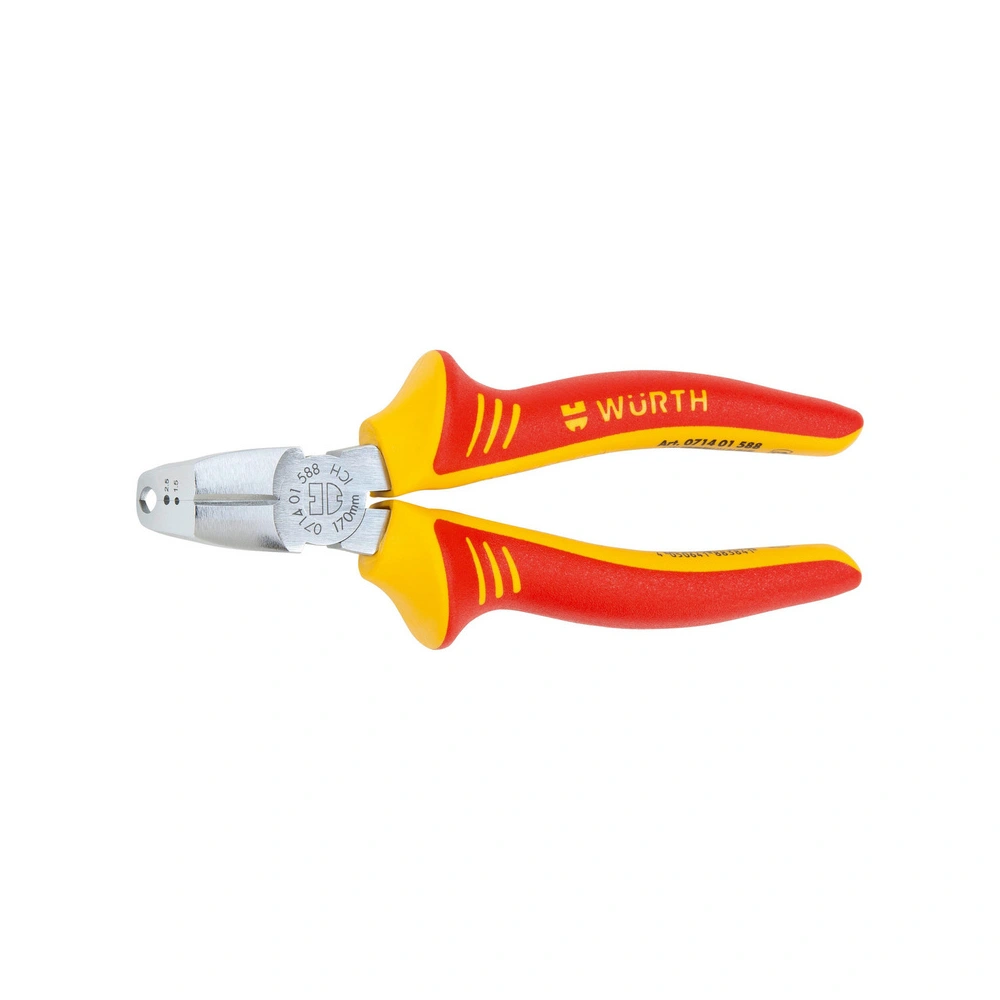 3 različita alata u 1 kleštima:sečenje i skidanje izolacije sa električnih kablova.VDE standard koji omogućava bezbedan rad na struji napona 1.000V AC i 1.500V DC