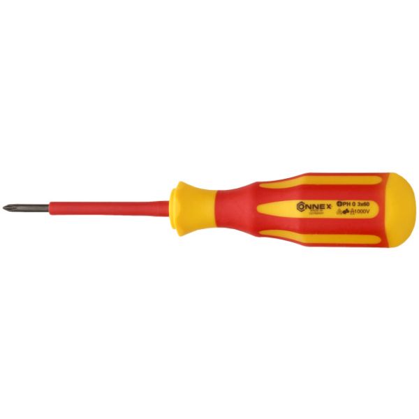 Odvijač poseduje dvokomponentnu ergonomski oblikovanu dršku, otpornu na udrace.