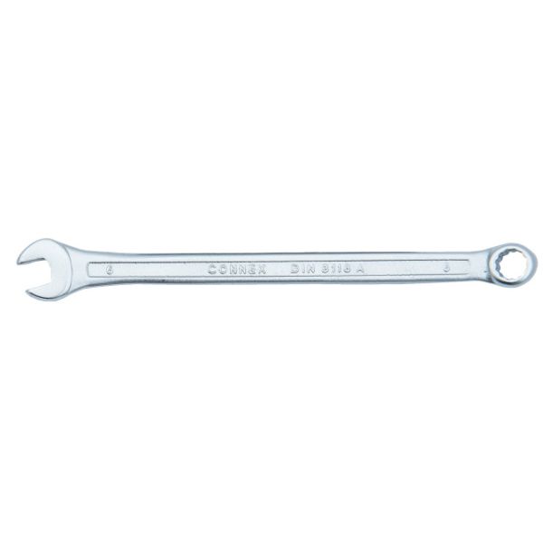 Okasto - viljuškasti ključ, napravljen od hrom - vanadijum čelika, mat - hromirane površine. Okasta strana zakrivljena je pod ulgom od 15°. Napravljen po DIN 3113 - A standardu.