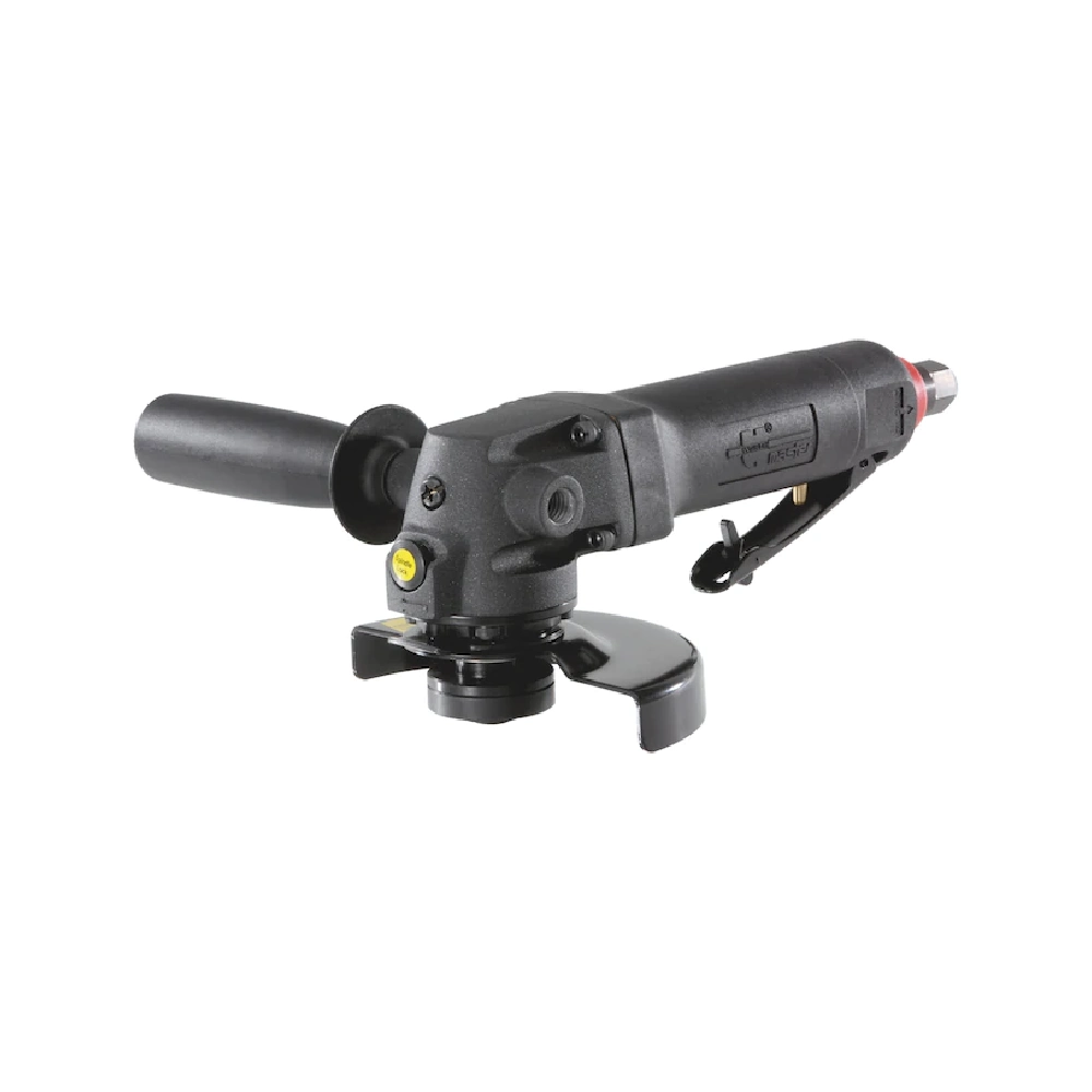 Snažna ugaona brusilica pogodna za brušenje, sečenje i grube radove. Mašina ima blokadu vretena, za brzo i lako menjanje rezne/brusne ploče. Podešavanje zaštitnog poklopca se vrši bez dodatnih alata. Odvod vazduha je na zadnjem delu alata, udaljen od zone rada. Plastično kućište sprečava hlađenje ruku u toku rada i ublažava vibracije.