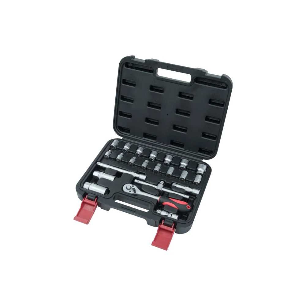 Set nasadnika sa račnom 3/8", dolazi u setu sa 22 nastavaka, koji su izrađeni od legure hrom-vanadijum čelika vrhunskih performansi.