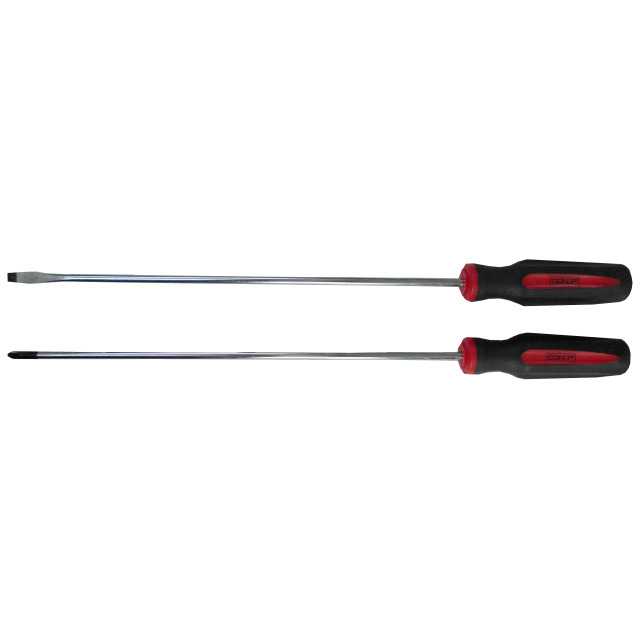 Set od dva ekstra duga odvijača 300mm, napravljenih od hrom-vanadijum čelika sa ergonomskom, dvokomponentnom drškom. Pogodni su za teško dostupna mesta.