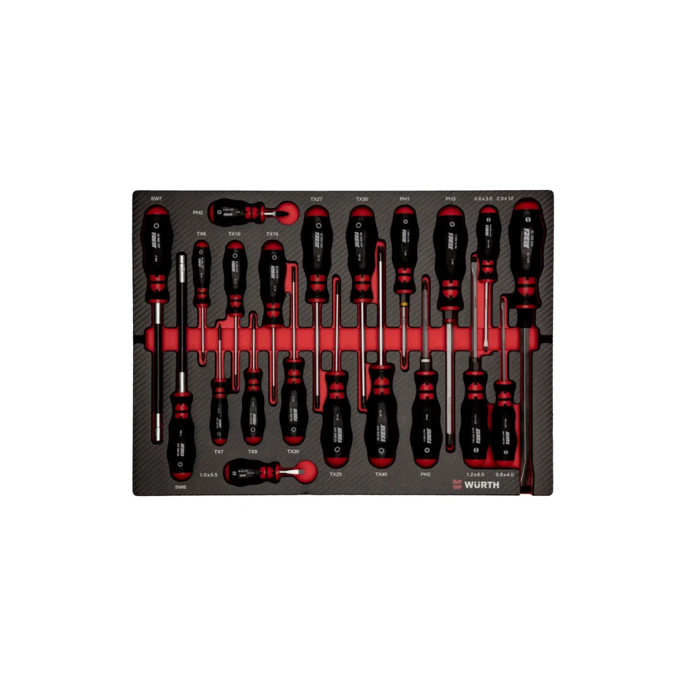 Set odvijača u ZEBRA kvalitetu. Set se nalazi u ulošku od neoprena koji pored svojih dobrih mehaničkih sposobnosti kao što su otpornost na vodu, ulja, vatrootpornost (samogasivost), ima savršeno pristajanje na alate i preglednost.