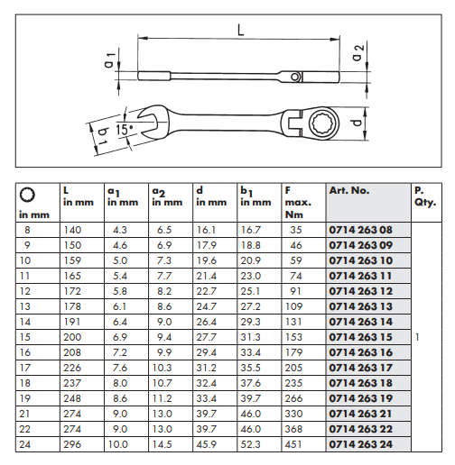 Idealana primena : Otpuštanje vijaka pomoću čeljusne strane , učvršćivanje zavrtnja pomoću mehanizma račne na prstenastoj strani.