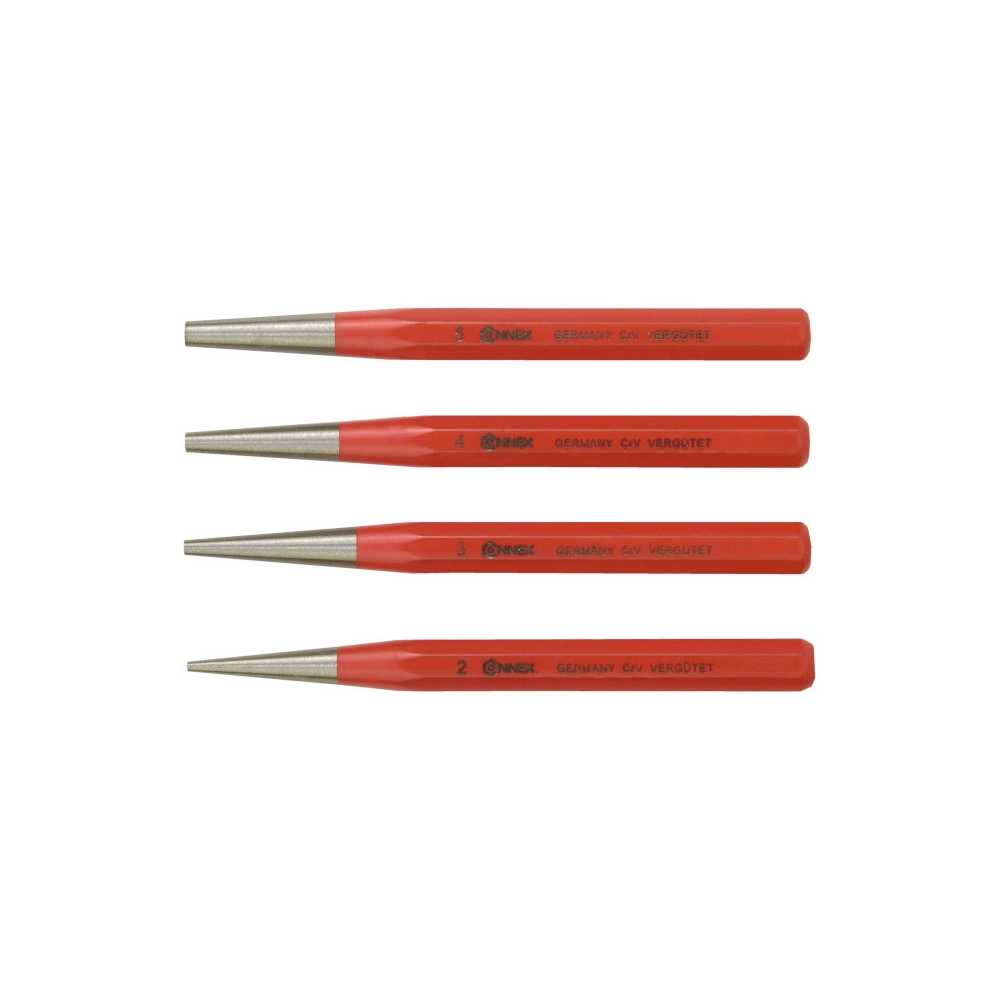 Set od četiri probojca različitih veličina, napravljenih od hrom - molibden - vanadijum vazdušno ojačanog čelika i kaljene udarne glave.