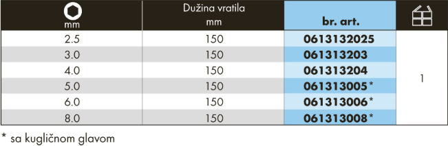 ZEBRA set imbus odvijača sa T-ručicom i loptastom glavom. Raspon prihvata 2,5-8mm.