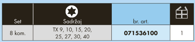 Set ugaonih odvijača TX imbus ključeva u ZEBRA kvalitetu - 8 kom.