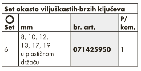ZEBRA set okasto-viljuškastih ključeva sa račnom ,OK 8-19.Okasta strana ključa je POWERDRIV®.