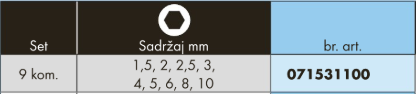 ZEBRA set kratkih imbus ključeva. Raspon prihvata 1,5-10mm.