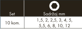 ZEBRA set kratkih imbus ključeva. Raspon prihvata 1,5-12mm.