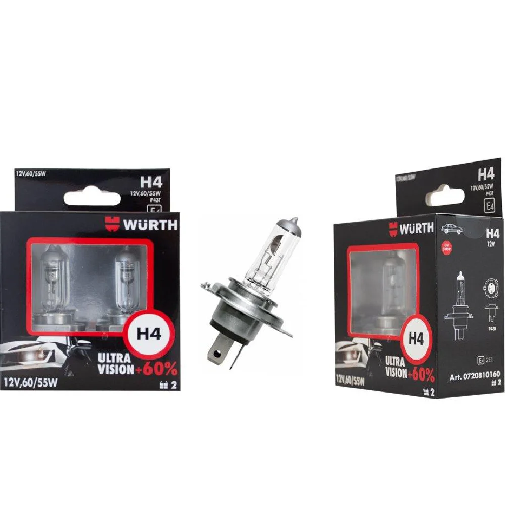 Pojačani svetlosni efekat koji omogućava nov dizajn žarne niti, nov dizajn sa srebrnim vrhom na sijalici (H4/H7) i novi dizajn pakovanja, čine Ultra vision veoma atraktivnim u programu Wurth sijalica fara za vozila sa instalacijama od 12V.