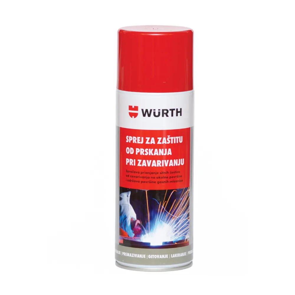 Sprej za zaštitu od prskanja pri zavarivanju sprečava prijanjanje sitnih čestica od zavarivanja na okolne površine. Služi za održavanje površine gasnih mlaznica. Štiti površinu oko vara i mlaznica za žicu na plameniku sprečavajući lepljenje sitnih čestica koje nastaju prskanjem u zoni zavarivanja. Smanjuje okolnu temperaturu površine oko vara, podmazuje površinu klizanja žice kroz mlaznicu. Može se koristiti kod elektrolučnog, autogenog, WIG/TIG zavarivanja na svim podlogama. Nanosi se u tankom sloju. Štiti od korozije. Ne sadrži silikon. Transportno pakovanje 12 kom.
