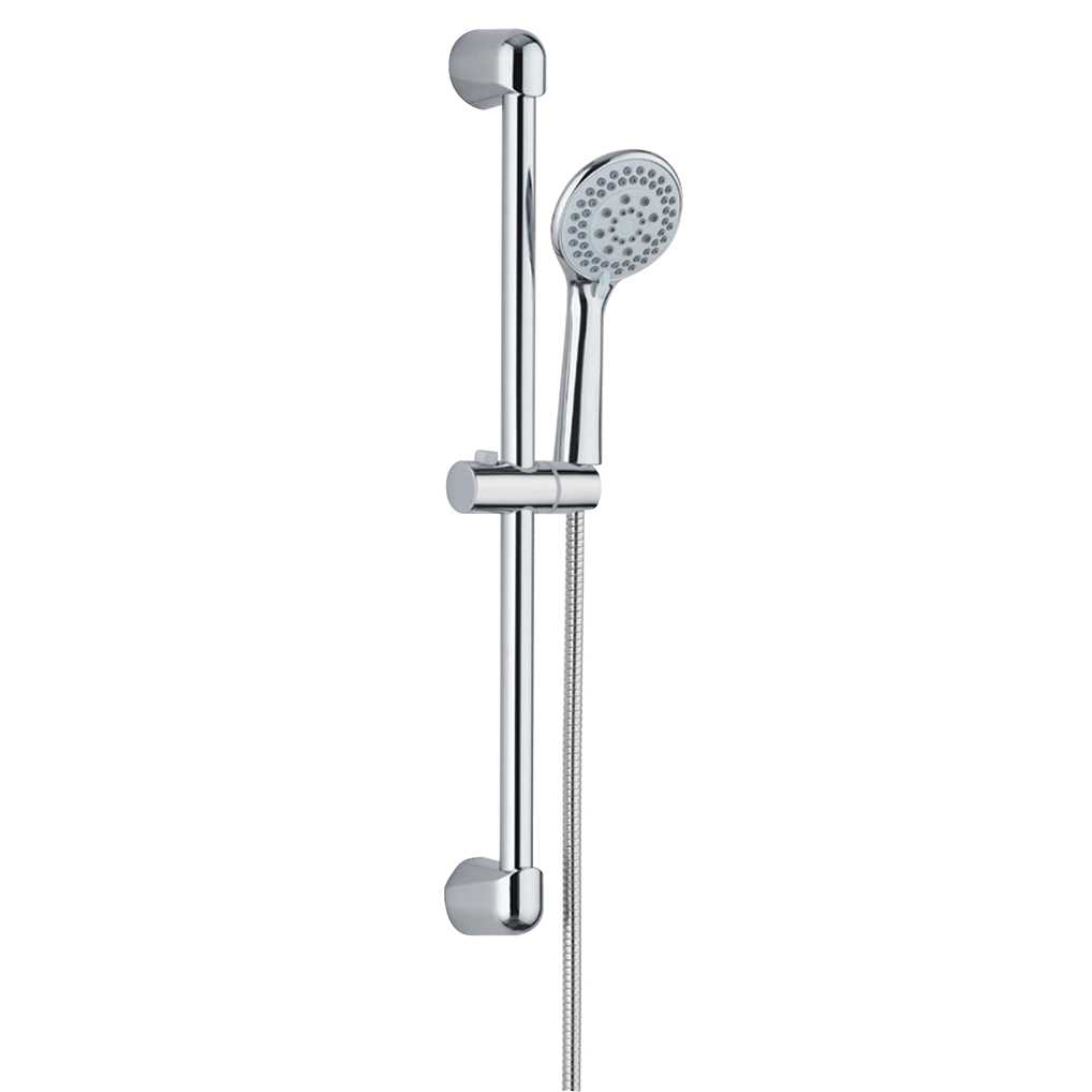 Tuš-set Pia se sastoji od ručke tuša, creva i konzole za kačenje. Klizeća šina prečnika 25mm i dužine 70cm ima pomične držače ručki i lako se prilagođava. Ručka tuša je urađena od kvalitetnog ABS-a, hromirana je i ima 5 vrsta mlazeva. Prečnik glave ručice tuša je 106mm, a crevo je dužine 150cm.