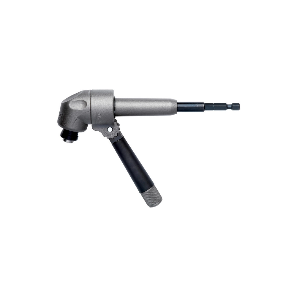Snažni ugaoni nastavak za električnu bušilicu, sa magnetnim držačem umetaka 1/4" i brzoizmenljivom glavom. Specijalno dizajniran za uske i skučene prostore.
