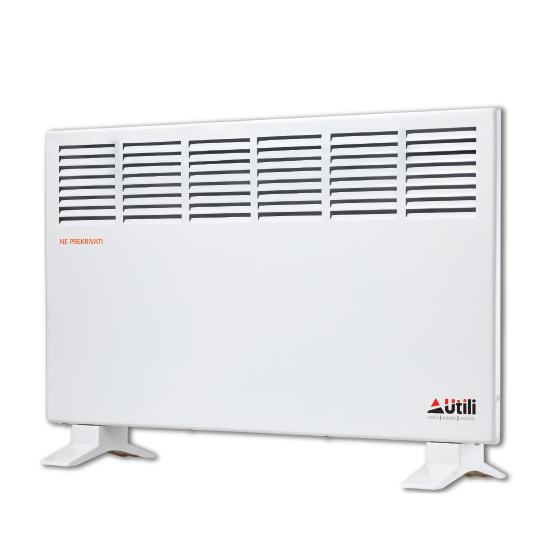UTILI Kompaktna konvektorska grejalica Designed je grejalica visoke toplotne efikasnosti i modernog dizajna. Ima termostat za podešavanje optimalne temperature, a snaga može da se podešava - 1000W ili 2000W. Termostat i podesiva snaga omogućavaju podešavanje i održavanje optimalne temperature u prostoriji. Koristi se kao samostojeća grejalica. U sebi ne sadrži ventilator stoga je ne raznosi prašinu i radi bešumno. Težina je 4,73kg.
